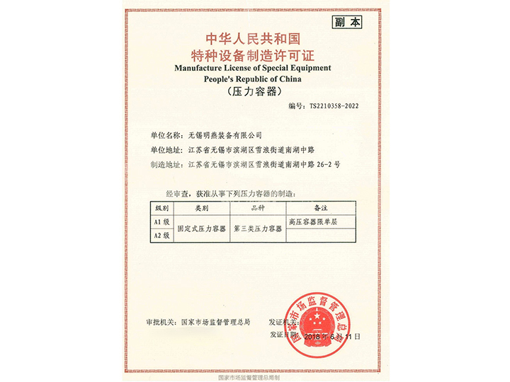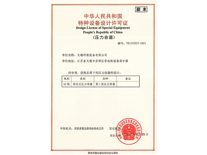 特種設(shè)備設(shè)計(jì)許可證(壓力容器)